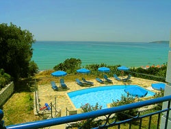 Penzion WATER SIDE / MILOS s bazénem (lehátka a slunečníky zdarma) leží v zahradě, 150 m od písčité pláže v městečku Lourdas. Studia pro 2–3 osoby jsou vybavena kuchyňským koutem, soc. zařízením, balkónem s výhledem na moře, TV, wi-fi, trezorem a klimatizací v ceně zájezdu. Překrásný výhled na moře si vychutnáte i při koupání v bazénu. Nejbližší obchod s potravinami se nachází cca 500 m od ubytování. Taverny a restaurace se nacházejí přímo u pláže. Penzion doporučujeme klientům, kteří hledají klid a odpočinek i v hlavní sezóně. Nudisté naleznou dostatek soukromí na okrajích pláže.