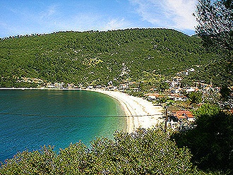 Na východním pobřeží ostrova u malého zálivu Panormos najdete stejnojmennou vesničkou a plaž. Ta je idealni pro rodiny s dětmi. Asi 2 km od Panormosu leží pláž Milia, která je považována za nejkrásnější na ostrově. Cesta k ni vede po pohodlné široke silnici. Je to největši pláž na ostrově. Nad pláží si můžete odpočinout nebo se občerstvit v malé taverně ukryté ve stínu stromů. Můžete zde využít plážovy servis – lehátka, slunečníky a kantinu. Další krásná pláž, tentokrát bez sluněčníků, lehátek a dalších turistických vymožeností leží cca 4 km od Panormosu. Jde o pláž Kastani, která bude vyhovovat těm, kteří upřednostnují klid, pohodu, krásné moře a přírodu.